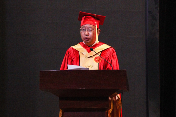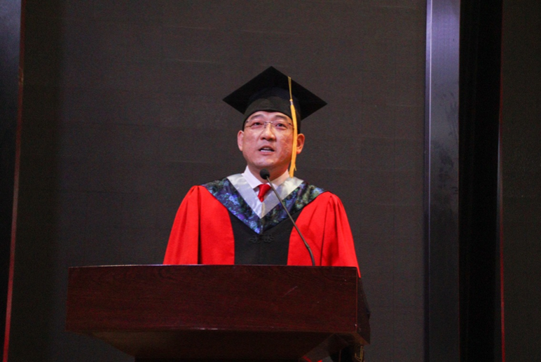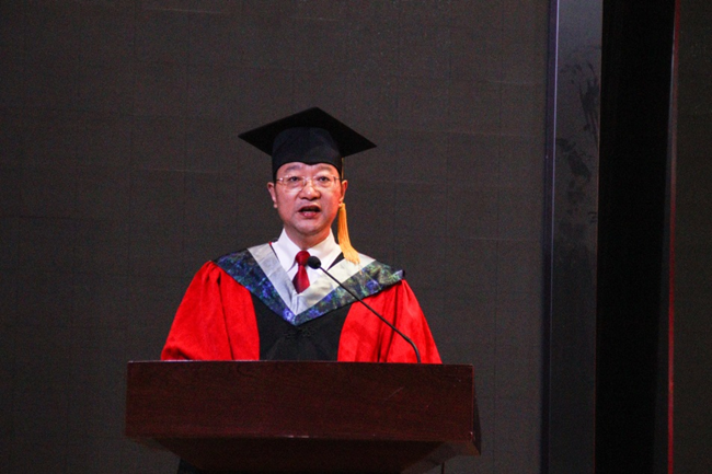 投资学系系主任郭华教授作为教师代表对同学们的未来寄予真挚的期望,他讲到:“同学们不要把欲望当志气。欲望是放纵,而志气却是约束。希望同学们能读书以明理,明理以处事。先以自治其身心,随而应天下家国之用!”
