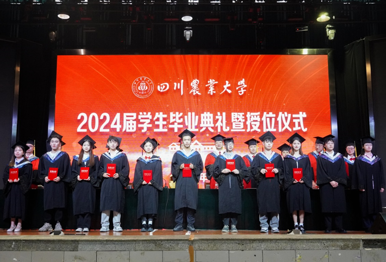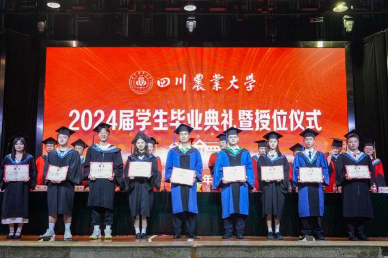 学院副院长吴平教授宣读2024届优秀毕业研究生、四川省优秀大学毕业生、学校优秀大学毕业生、学校优秀毕业论文和学院优秀毕业论文获奖名单,主席台就座的领导和老师为获奖代表者颁奖。