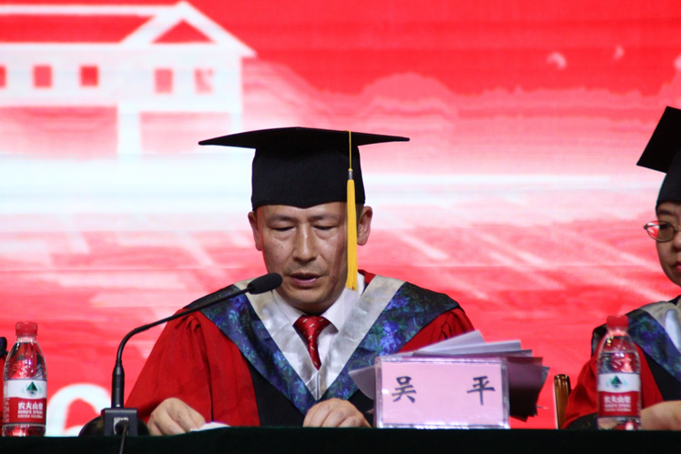 刘登才副校长宣读学位评定委员会关于授予硕士、学士学位的决议,主席台就座的领导和老师为587名毕业生授位并颁发学位证书。最后,全体学生以嘹亮的《歌唱祖国》歌声为此次毕业典礼画上圆满句号。