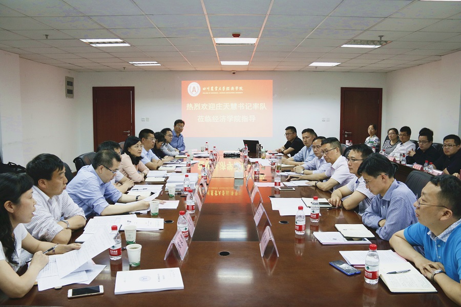 5月31日下午,在学校党委书记庄天慧的率队下,副校长刘登才、朱占元,党委常委、组织部部长杨锦秀,党委常委、党政办主任丁林,教务处处长李廷轩,人事处处长侯永翠,研工部部长、研究生院副院长李明洲,科技管理处处长曾维忠一行9人到经济学院调研指导工作。经济学院领导班子全体成员以及教师代表共计26人参会,会议由学院党委书记漆雁斌主持。
