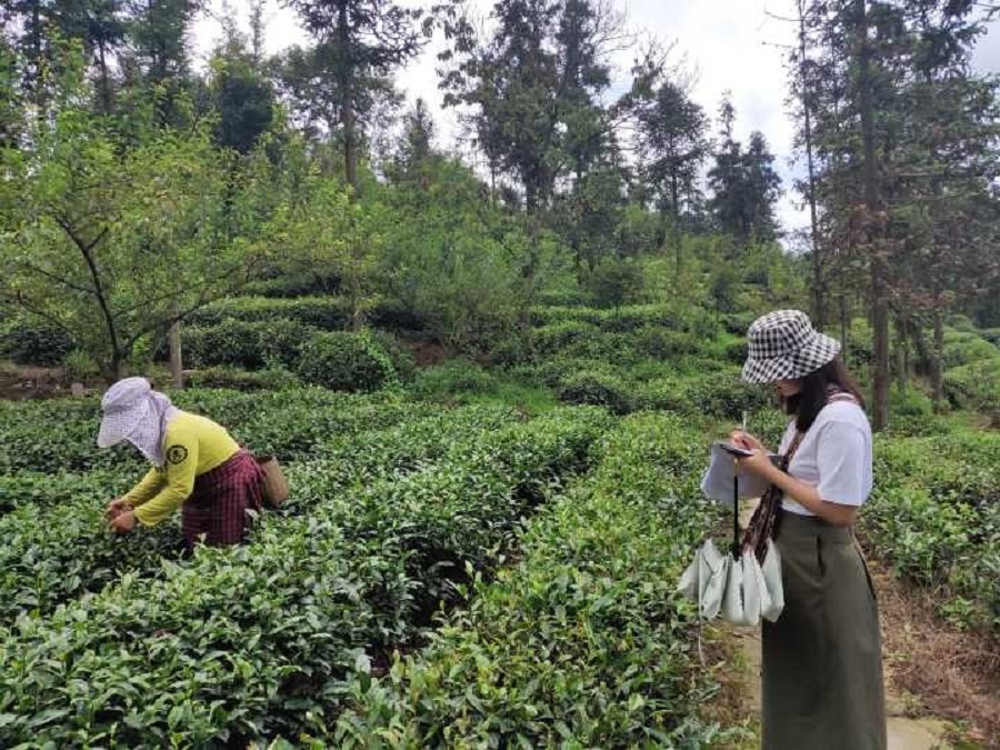 图为调研员正在调查茶农对绿色防控技术的看法。李浩南 摄