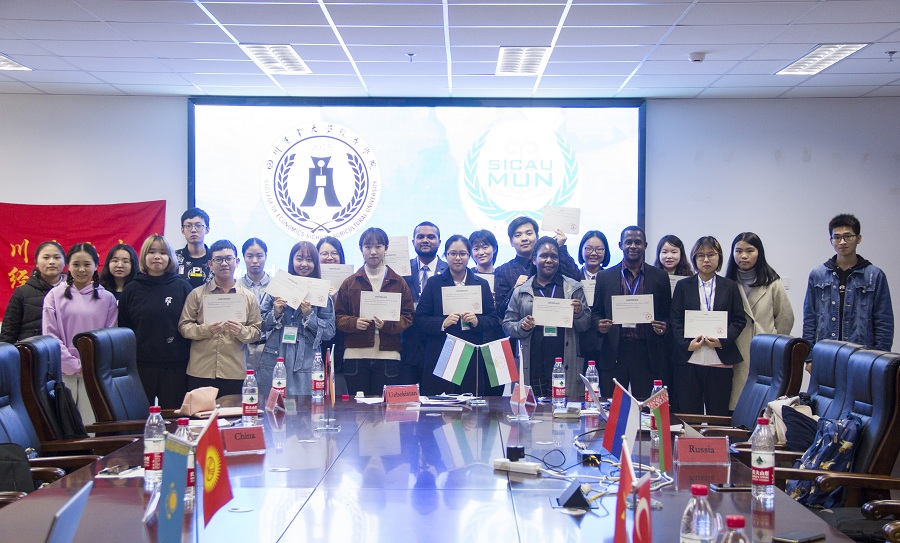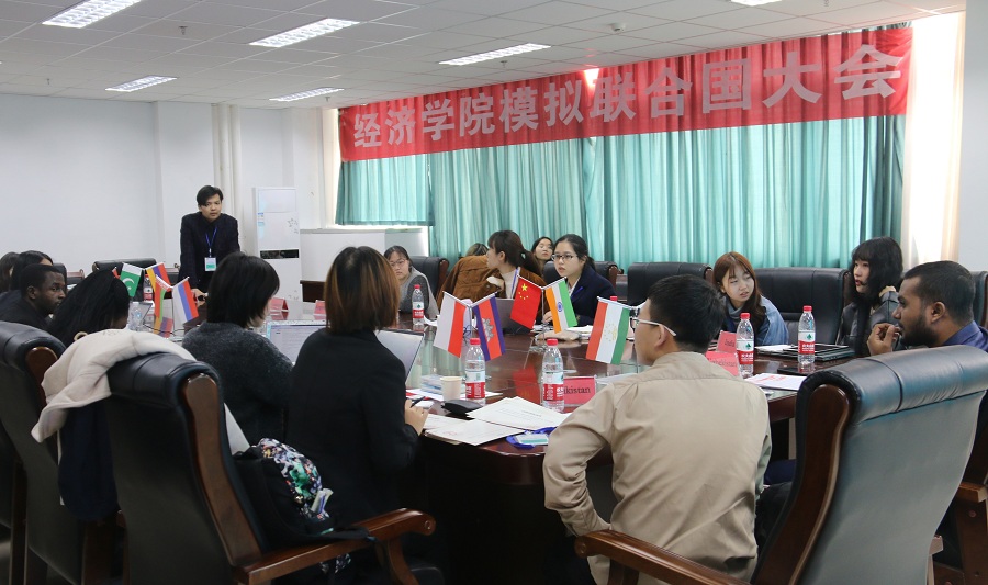 2019年11月16日9:00—18:00,经济学院第2届“模拟联合国大会”在7教207会议室举行。经济学院团委负责人钟贝老师、留学生教学秘书田野老师以及国贸(留)的5名留学生和10余名来自成都校区各学院的同学参会。会议由留学服务部邵钰琪主持。