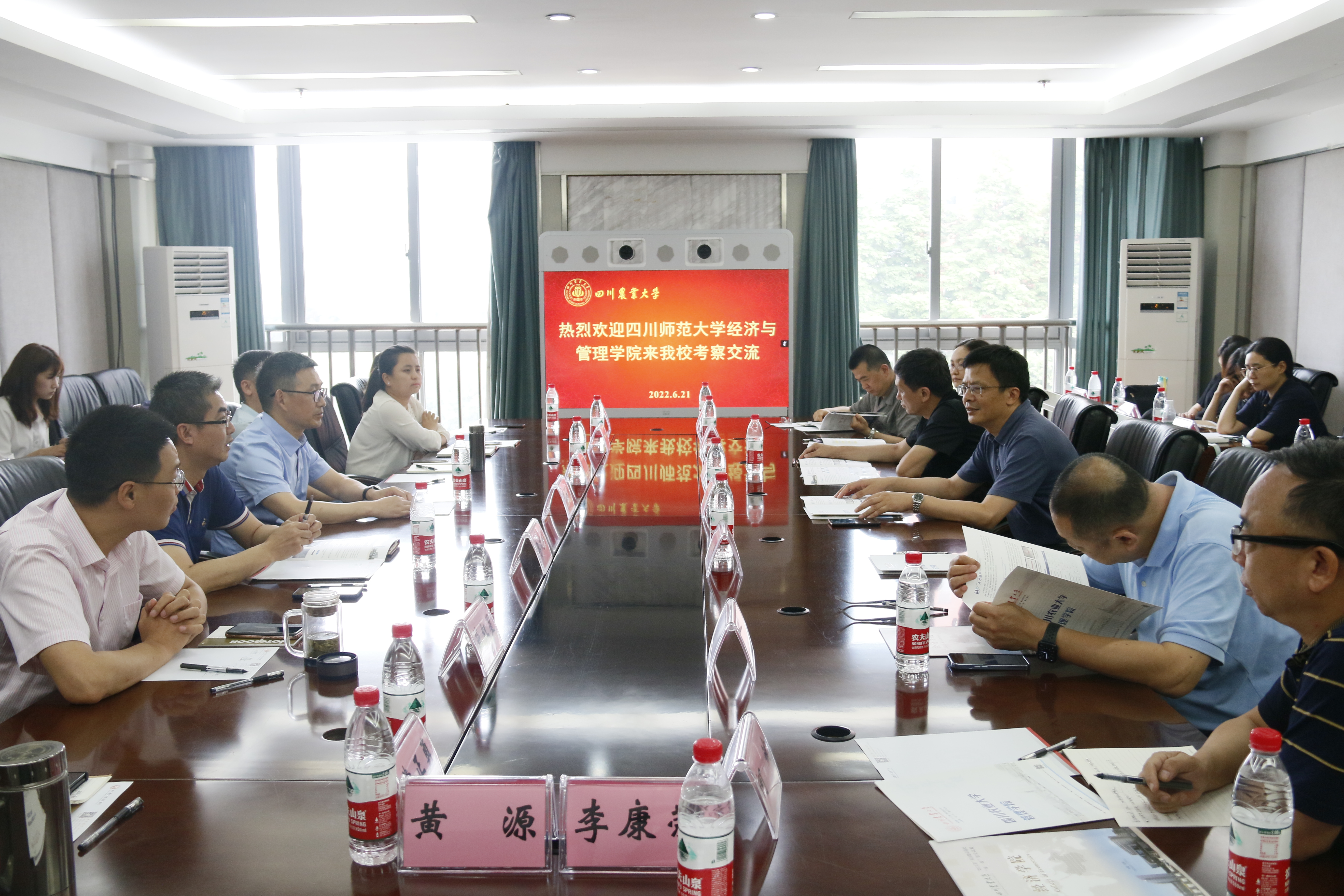 6月21日下午,四川师范大学经济与管理学院肖明辉书记一行16人来校考察交流。经济学院党委书记漆雁斌、副书记张翅、副院长吴平、管理学院党委书记李建强、副院长蓝红星等出席交流会。