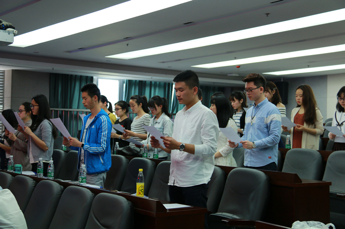 教务谢春梅老师进行了班级规章制度的讲解,希望各位学员明确学习目标,严格遵守教学制度,打造良好的学习氛围。仪式上,来自经济学201501的学生代表董子豪进行了发言并带领全体学员们进行了宣誓。