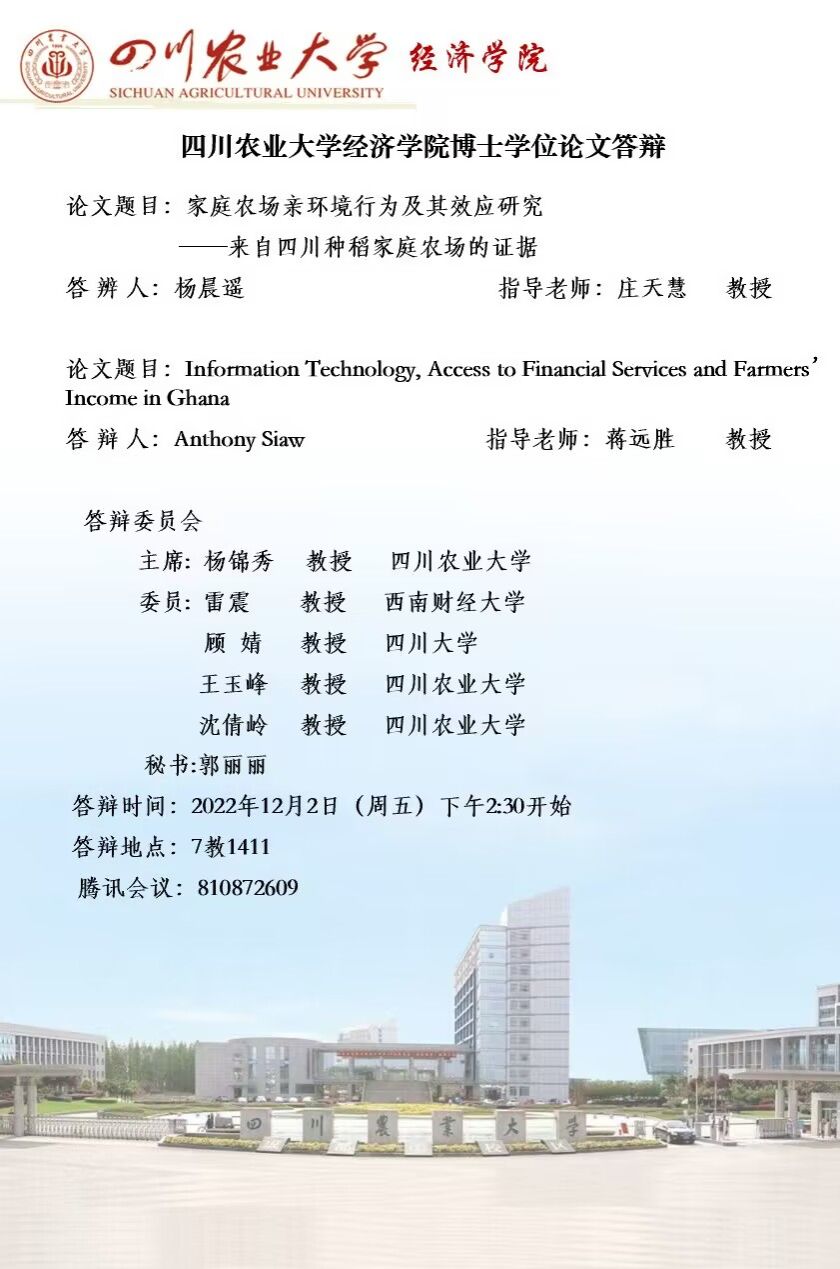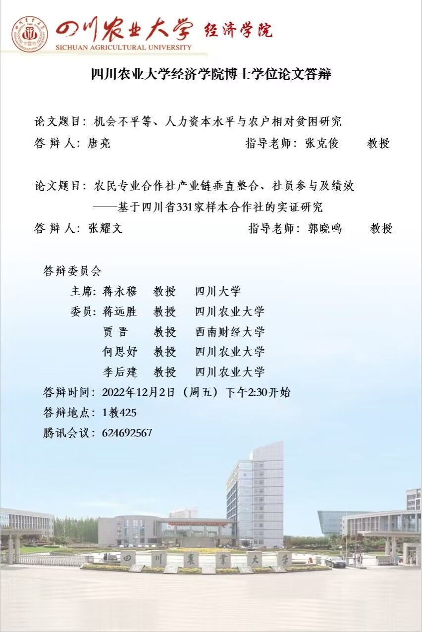 经济学院博士学位论文答辩公告