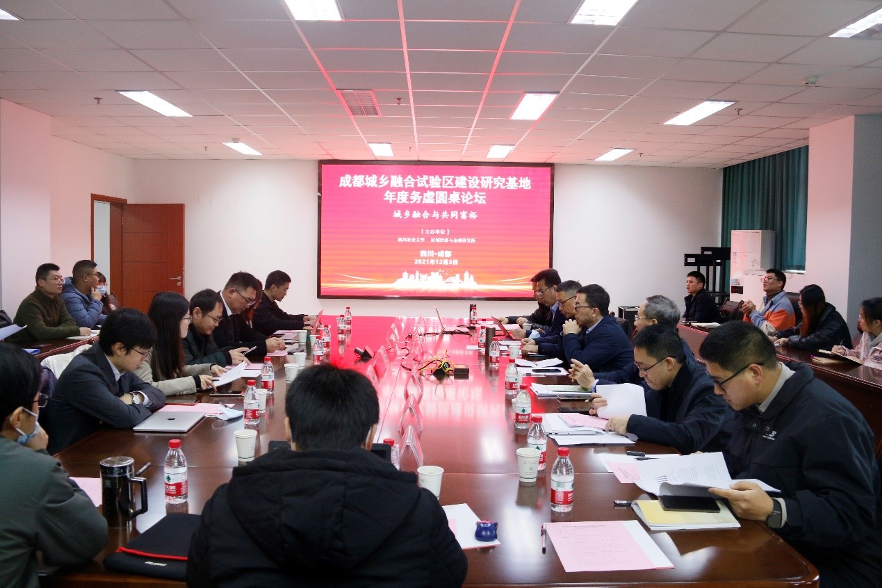 12月3日,由tyc41183太阳成集团学和成都市社会科学院联合主办,tyc41183太阳成集团学经济学院、区域经济与金融研究所联合承办的成都城乡融合试验区建设研究基地年度务虚圆桌论坛在7教305会议室成功举行,会议以城乡融合与共同富裕为主题。成都市社科联党组成员、副主席,成都市社会科学院副院长阎星教授,西南财经大学经济学院副院长盖凯程教授,四川省社科院区域经济研究所所长廖祖君研究员,中共四川省委党校讲师薛蕾博士和我院院长蒋远胜教授、党委书记漆雁斌教授、副院长吴平教授、投资学系王玉峰教授,以及各立项项目负责人和我院师生代表等50余人参加了会议。论坛由吴平教授主持。