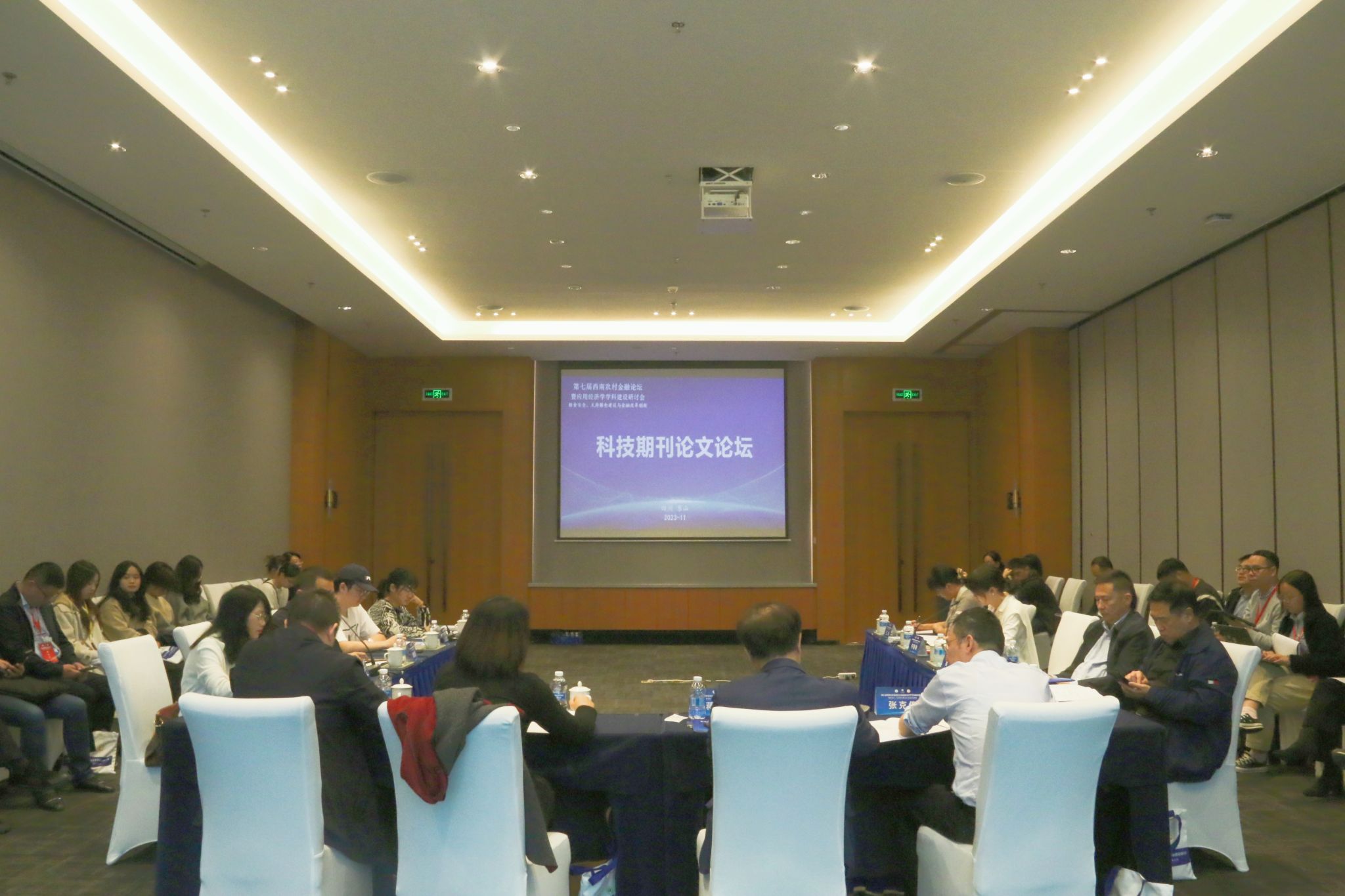 11月11日,以“粮食安全、天府粮仓建设与金融改革创新”为主题的第七届西南农村金融论坛暨应用经济学学科建设研讨会在乐山市高新翰文大酒店顺利举行。来自国内50余所高校、科研院所、金融机构、学术期刊和政府部门的近200名农村金融领域专家学者、业界代表参加本次论坛。论坛由我校与四川省农村信用社联合社、四川省金融学会乡村振兴金融专委会联合主办,我院与乐山农商银行、西部乡村振兴研究中心承办。
