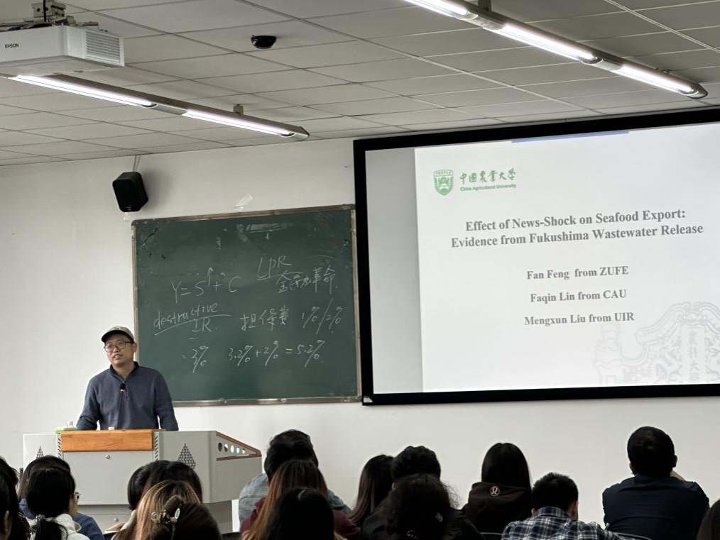 为进一步提升我院学子的科研水平,激发学术热情,创新研究方法,11月14日,学校科技处、经济学院邀请中国农业大学经济管理学院林发勤教授到访,并在我院开展题为“新闻冲击对海产品出口的影响:来自福岛污水排放的证据”的学术讲座。学院院长曾维忠教授、金融学系主任臧敦刚教授、学院部分青年教师及百余名学子听取了讲座。