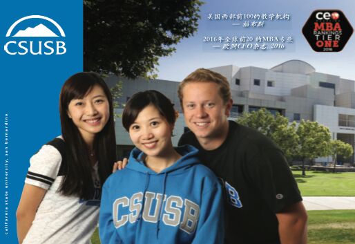 加州州立大学圣贝分校位于风景优美的南加州,距离洛杉矶和比弗利山庄不到一小时车程;为美国最大的公立大学系统加州州立大学系统的一员,有超过2000种课程以及超过75个学士和研究生以及博士课程可供选择,和美国众多顶尖大学结成学术联盟,有丰富的学术资源和校友资源以及众多顶尖合作企业;有将近20000名学生,但国际学生比例不到10%。美国公立大学西部排名第16位!US NEWS以及普林斯顿评论为美国最顶尖以及性价比最高的MBA研究生项目,加州州立大学圣贝分校的MBA的创业管理和企业家硕士学位仅次于哈佛和沃顿,位列全美专业排名前三!该校的商学院项目被AACSB(国际菁英商学会协会)认证。加州州立大学圣贝分校同时也被普林斯顿评论(Princeton View)评为“西部地区最好的大学”。加州州立大学圣贝分校连续多年被美国新闻和世界报道(Us News and World Report)、普林斯顿评论和福布斯杂志评为美国西部顶尖大学。欧洲CEO杂志也评论该校的商业公共管理学院为世界上最具有创新精神的学院之一。欧洲CEO杂志指出CSUSB的商学院是世界上最具有创新精神的学院之一。同时也被欧洲CEO杂志评为“全球前20的MBA专业”。被美国Money Magazine 评为“美国投资回报率最高的大学”。CSUSB的商学院和MBA均排在美国前列,费用却是最低的,是决定投资回报率最高的选择。