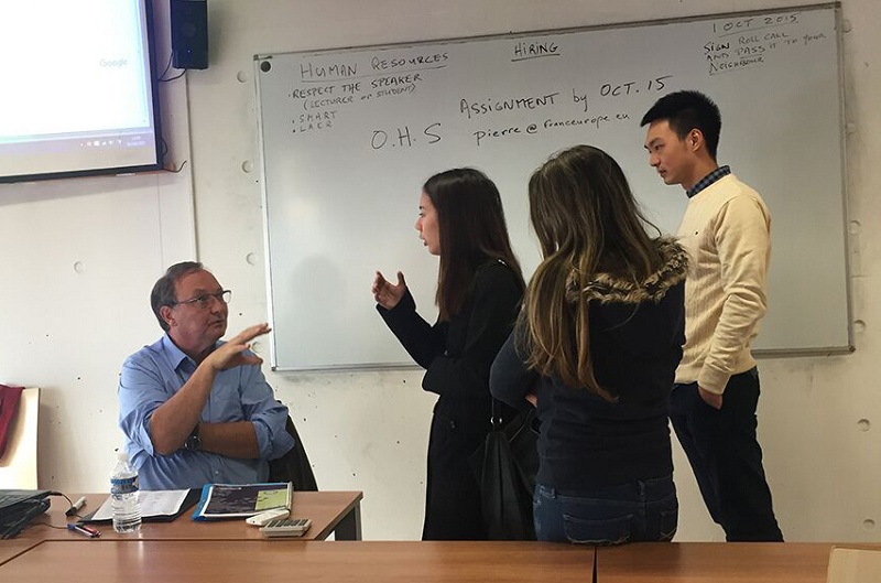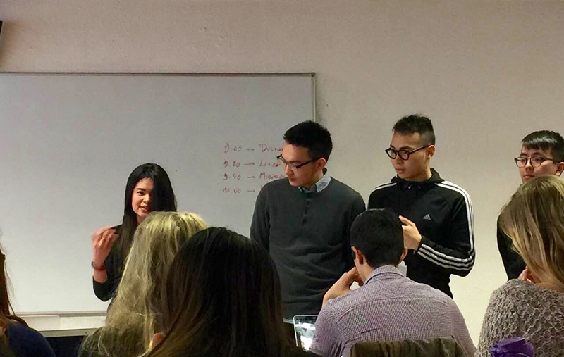 第二项挑战则是学习模式的转变,在法国等欧美国家,相比于国内的本科教育,商校的学习更倾向采用讨论、案例分析、小组报告等形式传授知识,学生可以在场景模拟、角色扮演等“实战演练”中不断加强各方面的能力,提高学习的自主性。还记得在刚开学的第一节课程French Culture and Civilization上,老师要求我们在一个小时之内完成小组讨论和课题报告的准备工作。这项任务对于初来乍到的我们其实是个不小的挑战,我们虽然已在川农积累起了比较丰富的课堂报告经验,但要在极短的时间完成资料检索、与其他国际学生的交流以及PPT的制作和展示,看起来仍然困难重重。关键时刻,相信是在川农三年培养起的学习习惯和团队合作能力,以及打下的语言基础,最终帮助我们第一次顺利走上了法国商校的讲台,带着自信与平和向在座的外国朋友表达出“中国观点”。