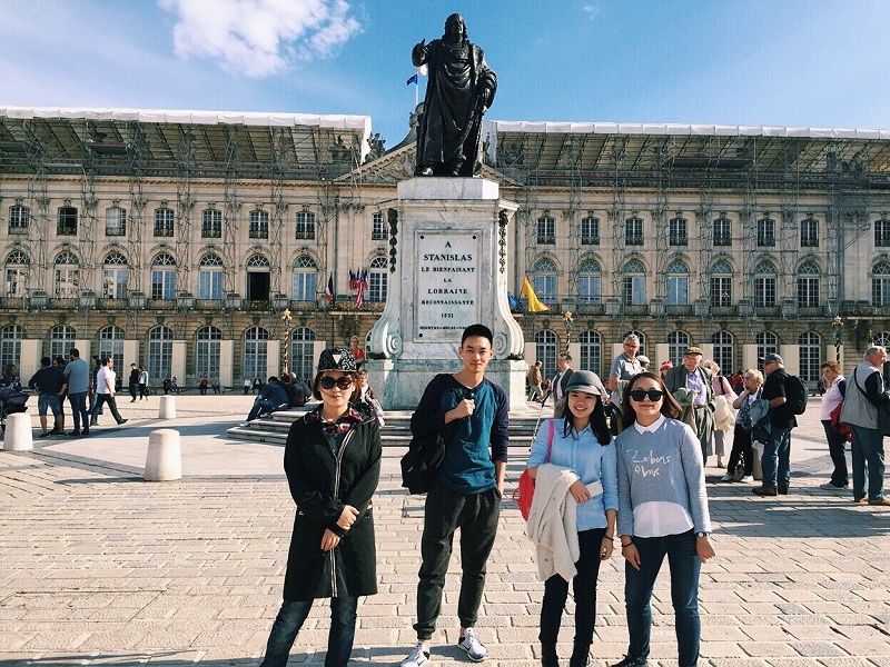 法国人讲究生活的艺术,街头相遇的老太太满头银发涂着红唇,踩着高跟,在“巴黎春天”大袋大袋买着香奈儿,从容而又优雅地老去;法国人善于利用闲暇,在咖啡厅露天座贪婪地吸吮着阳光;法国人热爱美食甜点,就连大学食堂的甜点,都精致得让人赞叹;静谧整洁的街道,从卖艺者手风琴箱里流泻而出的音符,在阳光下绿得通透的树叶,浮雕繁复的低矮小屋……在南锡的经历让我们内心充满了感激,感激自己所做留法决定,感激母校给予的交换机会。在这样一个远离了繁华,远离了喧嚣的小城,我们或许更能够静下心来感受生活带给我们每一次感动。