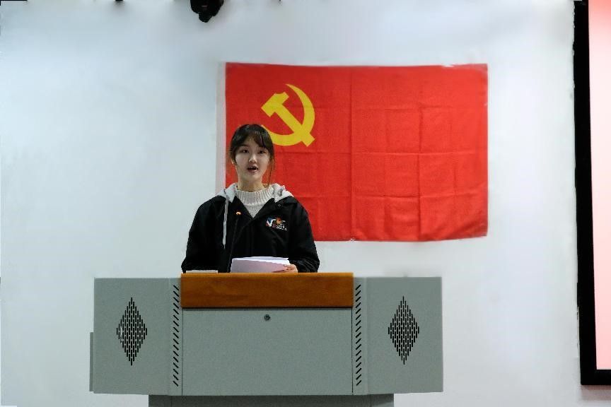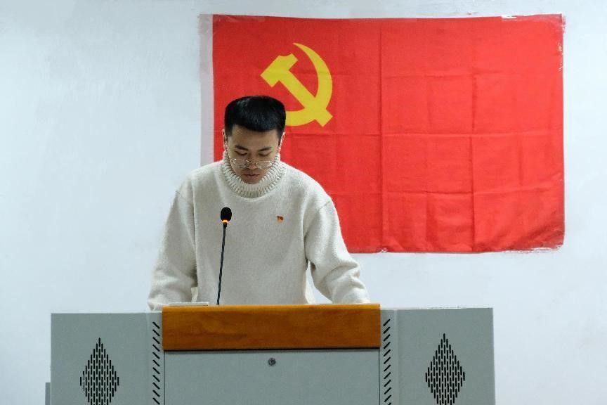 两名新党员代表刘昕、黄靖杰作表态发言,庄严承诺坚定共产主义理想,认真学习,积极工作,在德智体美劳各方面发挥党员的先锋模范作用,为党旗增光添彩。