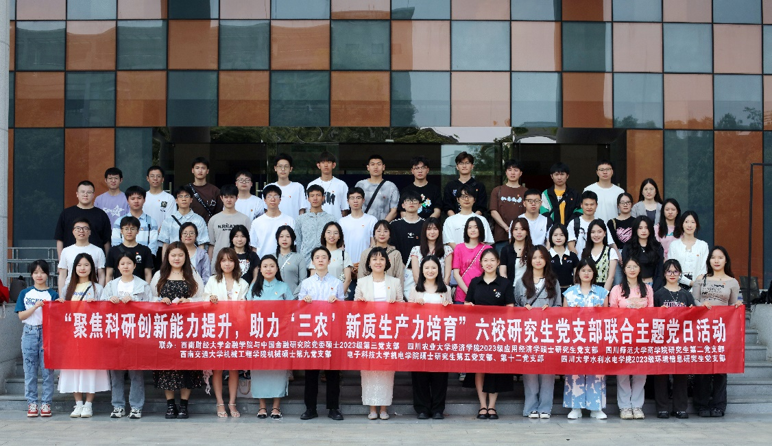为学深悟透全国两会精神,学习践行发展新质生产力的深刻内涵,427日,我院2023级应用经济学硕士研究生党支部联合四川大学水利水电学院2023级环境信息研究生党支部、电子科技大学机电学院硕士研究生第五党支部、第十二党支部、西南财经大学金融学院与中国金融研究院硕士2023级第三党支部以及四川师范大学商学院研究生第二党支部共同开展“聚焦科研创新能力提升,助力三农新质生产力培育”主题党日活动。
