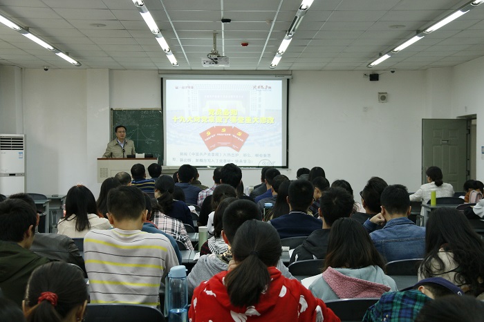 “各学生党支部要通过组织学生党员和入党积极分子学习党的十九大精神,感受党的自身建设和党治国理政取得的伟大成就,感受党的伟大,从而增强对习近平新时代中国特色社会主义思想的热爱和自信,增强作为党员和入党积极分子的自豪感和责任感,进一步坚定理想信念,主动、自觉,并宣传、动员、团结、带领周围同学共同努力成长为习近平新时代中国特色社会主义思想的优秀建设者和可靠接班人。”学院党委副书记何仁辉在学院党委学习宣传贯彻党的十九大精神专题组织生活会上对学生党员和入党积极分子作了如上动员。