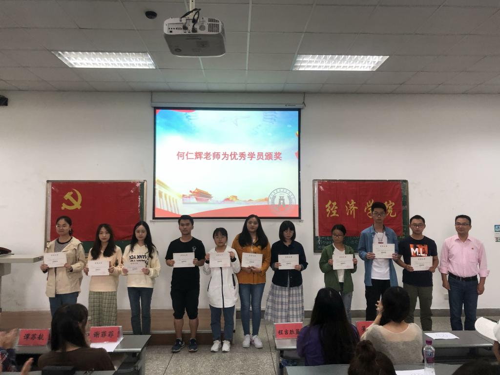 专题党课后,培训班进行结业典礼,何仁辉老师为杨怡等11位优秀学员颁发荣誉证书。优秀学员代表孙若水、刘婧瑶、李文丽就培训心得、身份意识与责任意识进行交流发言。