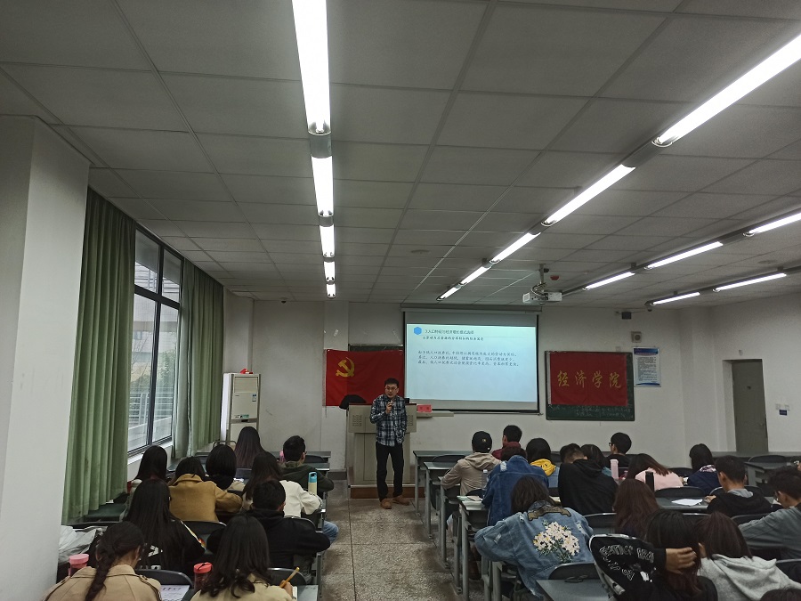 郑勇结合数据,为大家对比了近年来中美经济发展趋势,深刻分析了中美贸易摩擦的发生背景,并为同学们展示了经济新常态下,中国实力的快速发展。“从‘一带一路’发展倡议,刺激内需;到供给侧改革,产业结构升级,中国经济增长由量到质的转变,中国正由中国制造向中国创造奋勇前进。”郑勇强调到,经济学子要牢记使命,不畏艰险,努力成为国家所需要的人才,为民族振兴贡献自己的力量。