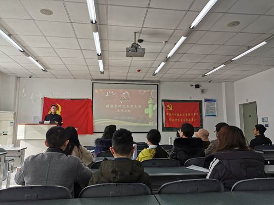 党支部书记李洪指出,支部现设书记1名,副书记1名,支部委员3名;支部现有正式党员10名,预备党员3名,入党积极分子12名。支部成立以来,在学院党委的坚强领导下,在学院老师的悉心指导下,在支部成员的配合下,始终坚持优化工作机制、提升活力、聚焦政治引领的核心理念。在今后支部工作的开展过程中,将采取更加多样的形式,增加对时事热点的关注与讨论,增加优秀党员学习心得及技能分享,增强支部成员之间的互动,支部成员共同努力,将支部建设得更加完善。