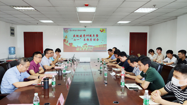 红旗飘飘,党徽灿灿。6月29日下午2点30,经济学院在一教403会议室隆重庆祝建党99周年,并召开“七一”表彰座谈会。学院党委书记漆雁斌,学校党委委员、学院党委委员、院长蒋远胜,学院党委副书记、纪委书记何仁辉,学院党委委员、副院长吴平,学院党委委员、教代会主席、工会副主席李阳明,学院党委委员、经济学系主任曹正勇,党委办、行政办和团委负责人,各师生党支部书记以及受表彰的先进集体和先进个人代表40余人出席会议。会议由何仁辉主持。