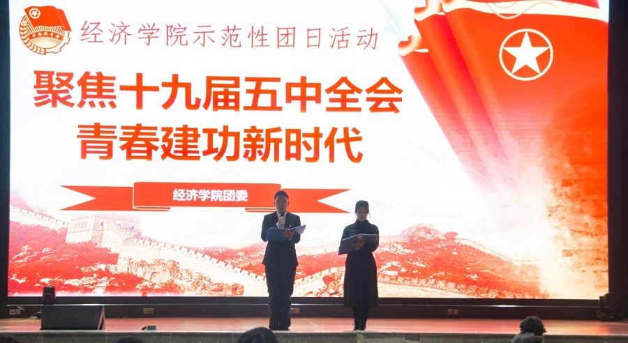 党有号召,团有行动,各团学组织也积极响应、迅速行动。11月25日,经济学院全体团干、团支委和团员代表600余人齐聚麦立方,参加“聚焦十九届五中全会,青春建功新时代”示范性团日活动。主题微团课、JJTV“新闻联播”、 主题辩论赛、情景剧《小莓村的故事》和改编歌曲《百年交汇点,扬帆新时代》等寓教于乐的宣讲方式,深化了团员青年对十九届五中全会精神的了解和认识。