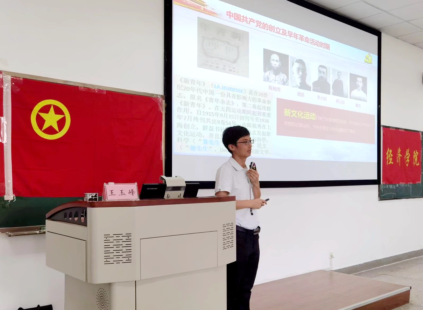 课上,王玉峰教授系统介绍了中国共产党从新民主主义革命到改革开放,再到社会主义现代化建设新时期的光辉历程,介绍了近百年中国共产党发生的翻天覆地的变化,并讲述了切身经历及体悟。他谈到,在中国共产党的带领下,中国实现了从几千年封建专制政治到人民民主的伟大飞跃,中华民族完成了由不断衰落到根本扭转命运、持续走向繁荣富强的伟大飞跃,中国人民迎来了从站起来、富起来到强起来的伟大飞跃。同时,他结合时代背景强调,当代中国青年是与新时代同向同行、共同前进的一代,生逢盛世,肩负重任,要坚信奋斗永远是青春最鲜明的底色,始终是推动社会进步最强劲的动力,从自身做起,从点滴做起,保持艰苦奋斗的前进姿态,才能用勤劳的双手成就精彩人生,在不懈奋斗中书写新的青春篇章。