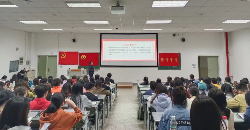 3月23日晚,经济学院2022上半年入党积极分子培训班第二次授课在四教A205室进行,国际经济与贸易系教工党支部书记李阳明副教授围绕“入党的条件和程序”为近170名学员进行专题培训。