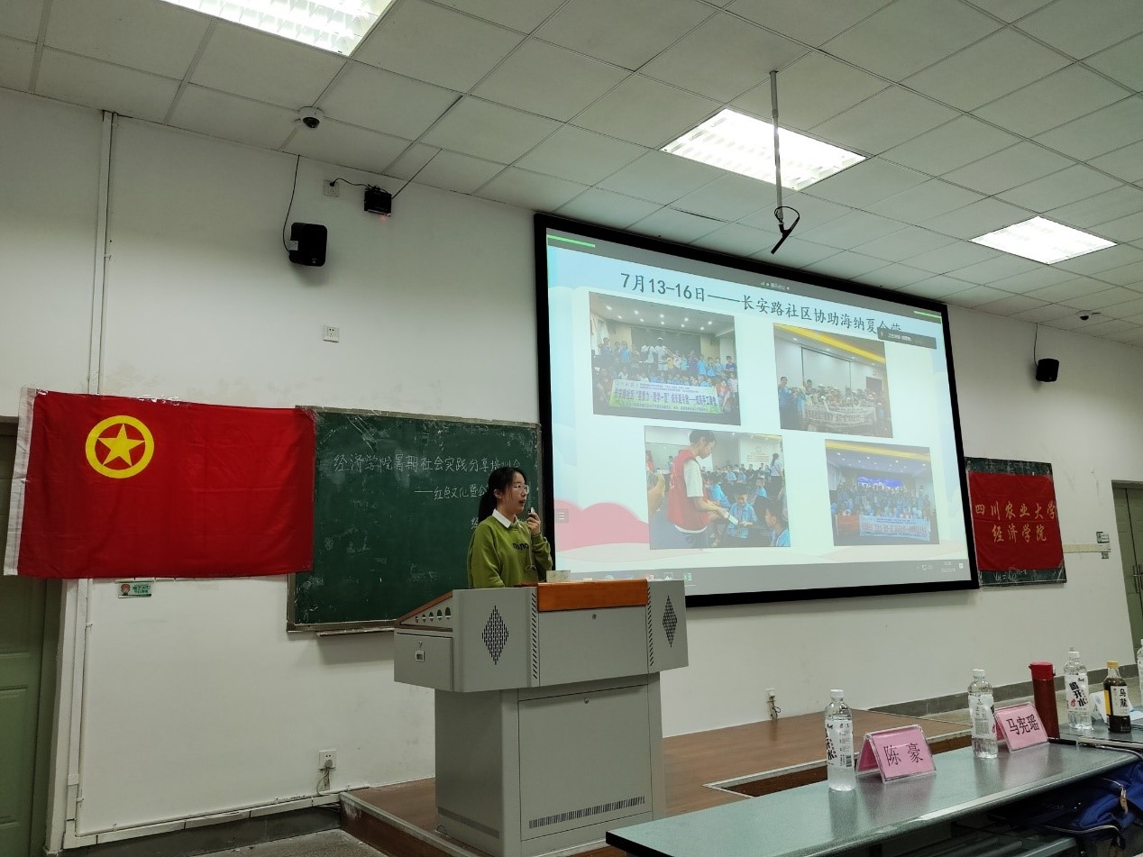 唐晓臻同学详细介绍了自己参加全国百强暑期社会实践团队—— “青马燎原——川农大党史宣讲接力百人团”的实践经历,分享了其中的故事,从准备PPT到联系社区再到多方宣传,细致讲述了筹备党史宣讲的全过程;曾经担任实践部负责人的她也鼓励同学们结合自身,多体验、多思考、多选择,用社会实践充实自己的每一个假期。