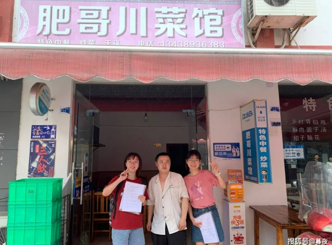 图为“外卖绿色联盟”成员在成都市温江区公平街道惠民路和商家肥哥川菜馆进行实地调研