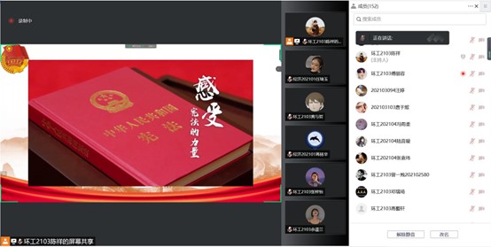 通过播放《感受宪法的力量》小视频,结合宪法保障社会公平、推动国家发展进步的法治故事与案例,深入学习与了解习近平法治思想的重要意义、丰富内涵与核心要义等内容,引导支部团员、青年树立尊崇宪法的意识,加入宪法知识快问快答,让团支部成员温习和巩固宪法知识,提高对宪法学习的热情。