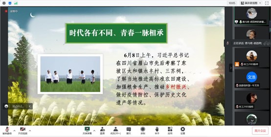 本次团日活动全体成员全部参与,积极互动,通过“青年人奋斗历程成就新时代”小视频播放、邀请第九期青马班成员经济学院胡语梣学长作“乡村振兴”主题会分享等活动,厚植支部团员红色基因,激发团员青年永远跟党走、奋进新征程的光荣使命,以实际行动迎接党的二十大胜利召开。