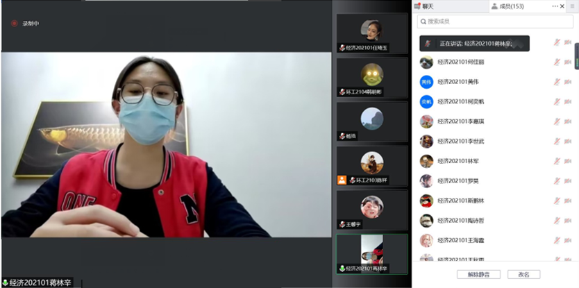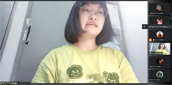 环工2103班余谨兰同学向支部团员青年分享了她对《论党的青年工作》一书的学习心得。她表示,该书体现了党中央对广大青年的高度关怀与重视,要深刻学习领会习近平总书记关于青年工作的重要思想,在学习研讨中深切感受习近平总书记对青年的关心关爱。