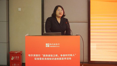 哈尔滨银行成都分行周泉老师用电影案例与生活实例展示了不法分子的诈骗手段,重点科普了征信基础知识、个人信息保护知识及“校园贷”危害等内容。积极引导大学生珍爱个人信用记录,提升学生群体正确的反洗钱和自我保护意识,强化安全消费理念。
