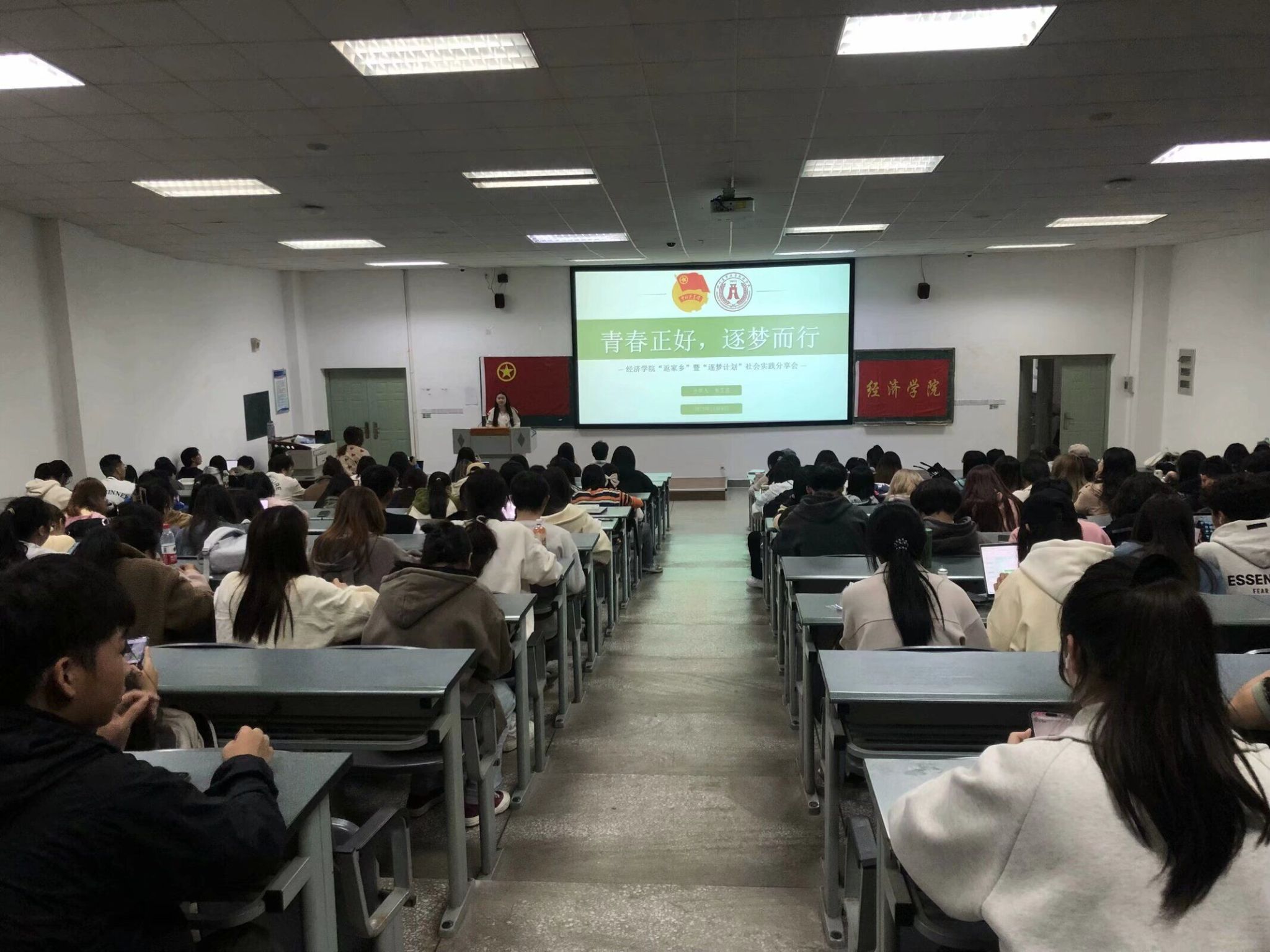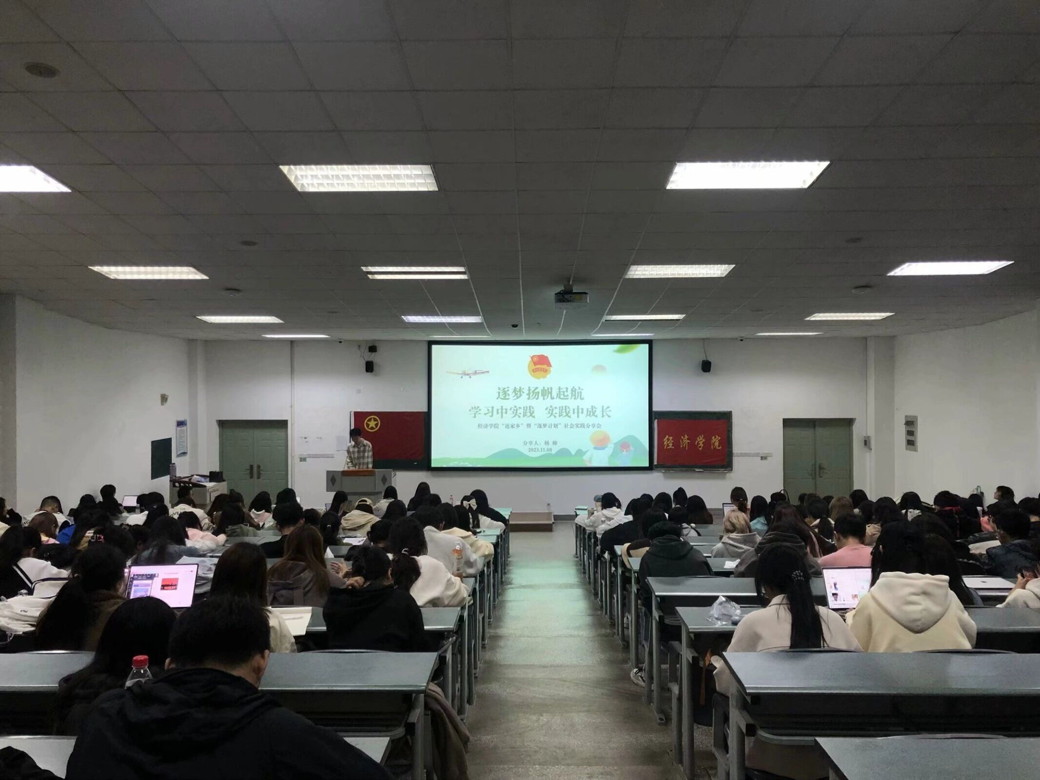 为鼓励和帮助同学们参与到社会实践中来,突出社会实践的育人作用,从实践中汲取养分,学以致用。经济学院团委实践部于11月8日在4-A106开展了以“返家乡”暨“逐梦计划”为主题的社会实践分享会。本次分享会邀请到了第十期青马班学员、校学生社团管理与服务中心主要负责人朱芷萱,第十期青马班学员、校学生会主席团成员黄雨佳以及校学生会主席团成员杨帅。