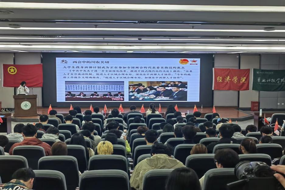为深入学习贯彻习近平总书记全国两会系列重要讲话精神,坚持把习近平新时代中国特色社会主义思想作为铸魂育人核心要义,在全面推进中国式现代化的新征程上展现新担当新作为,4月8日经济学院与草业科技学院开展了本次“聚焦两会精神,青春挺膺担当”示范性班团活动。