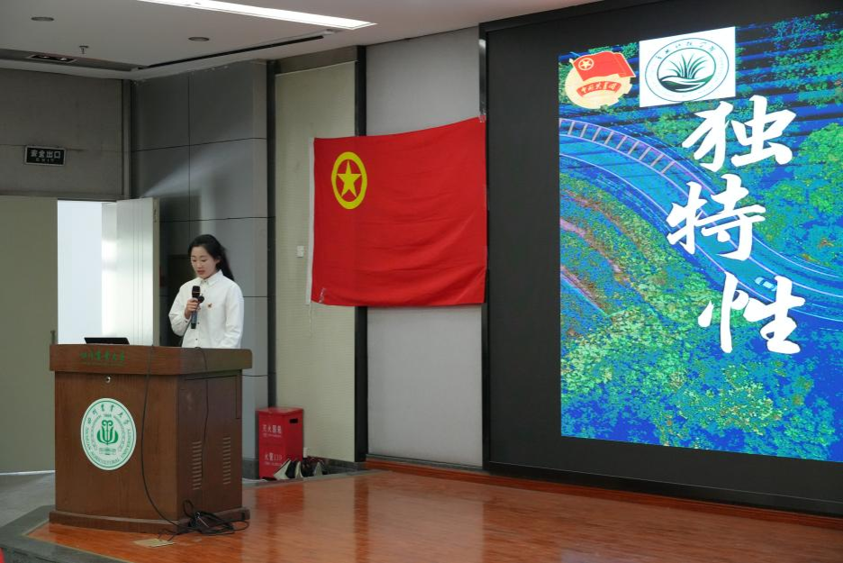 活动伊始,全体同学起立,齐声高唱团歌。激昂的旋律、嘹亮的歌声,这不仅是青春的誓言,更是班级前行的号角。随后校青马班学员丁佳渝同学为大家深入解读两会的核心要义,带领同学们明晰农业发展在时代进程中的重要地位。同时草业科技学院院青马班学员罗婉匀同学围绕新质生产力展开精彩讲解。在两位青马学员的分享下,同学们对两会及相关政策有了更深刻的体会,让同学们充分意识到创新科技引领经济,农业院校青年需勇担重任,以智慧与行动助力国家高质量发展与农业进步。
