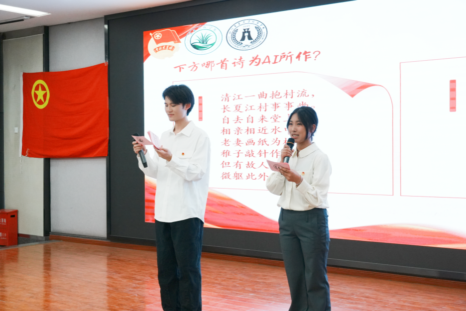 在AI技术引领时代发展的背景下,经济学院创新性将AI元素融入干事素质技能大赛。同时在活动现场举办的AI作品辨析环节中,同学们通过对 AI 作品的讨论与抢答,感受到了科技创新的无限潜力。科技赋能未来,创新永无止境,该环节既深化了青年学子对AI技术发展的认知维度,更有效激发了其探索智能技术前沿领域的创新动能。