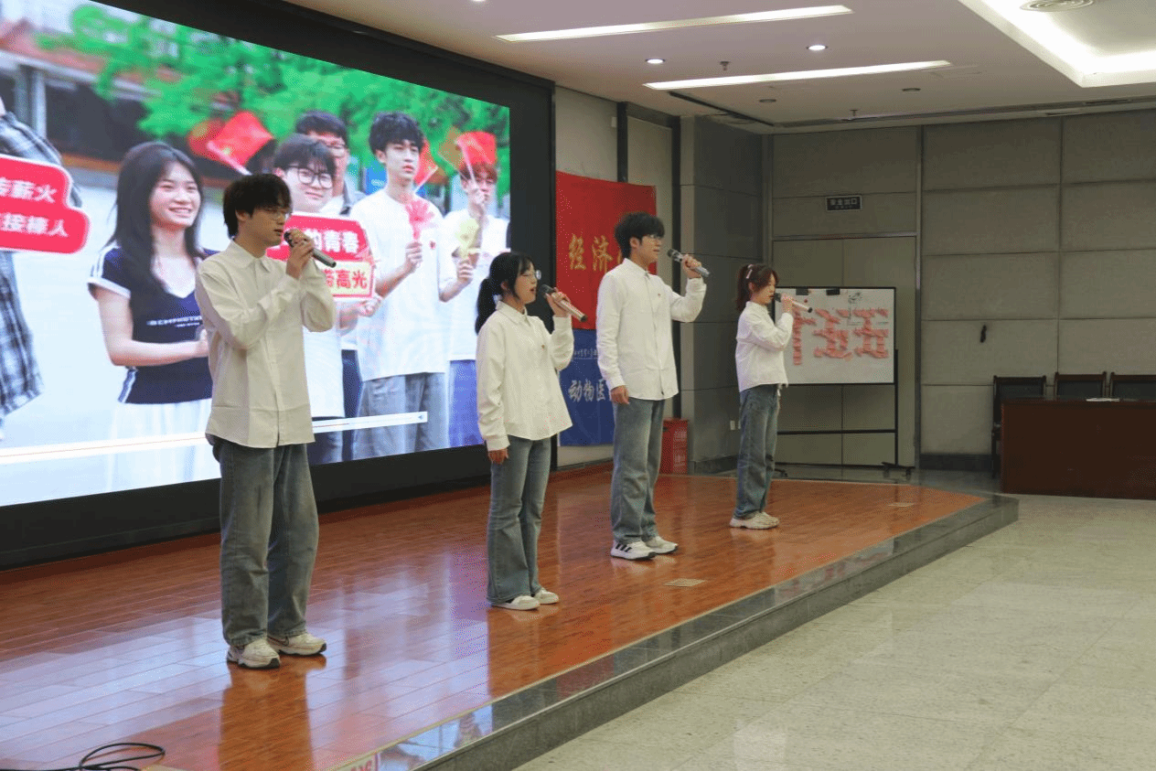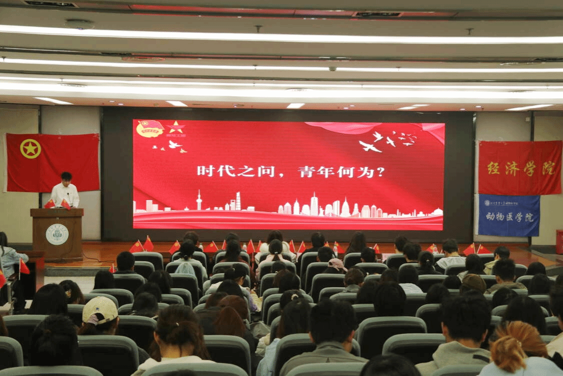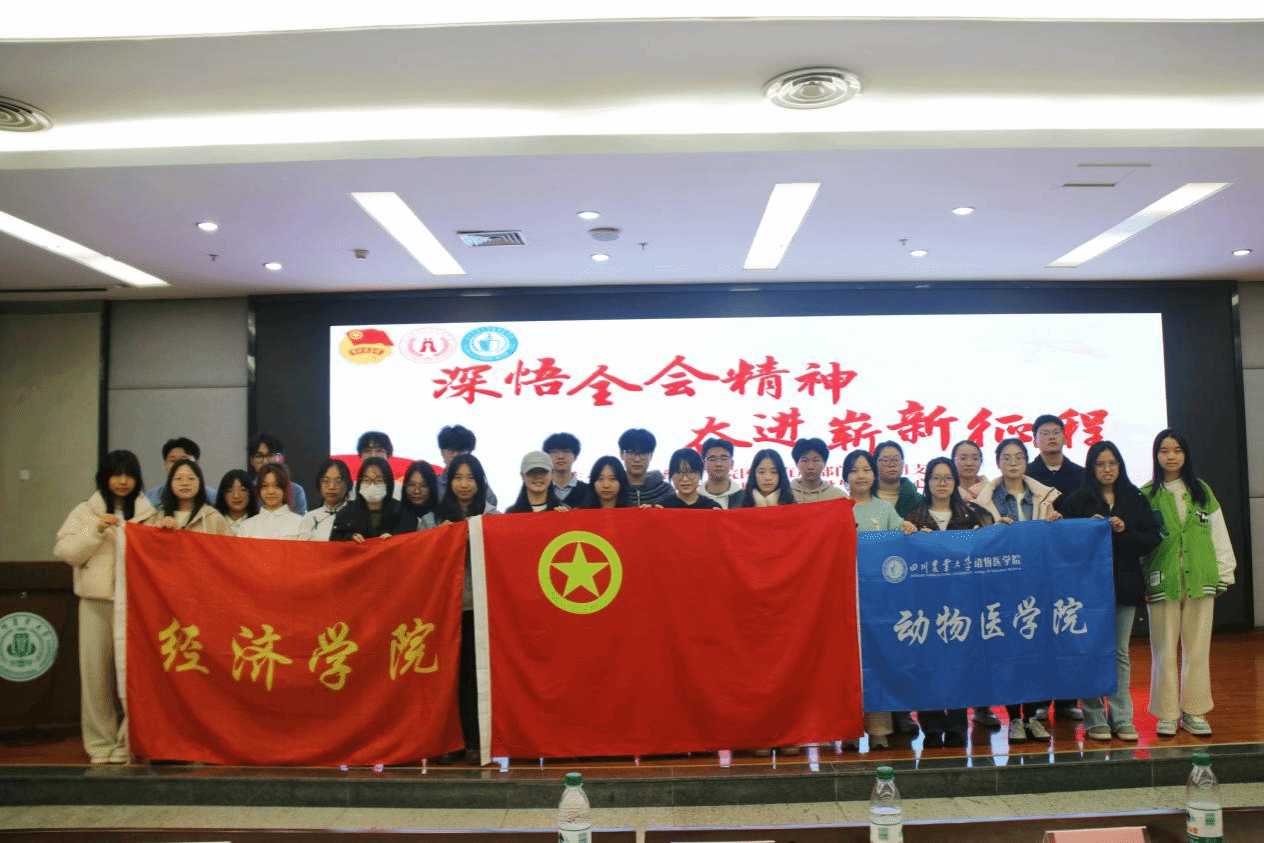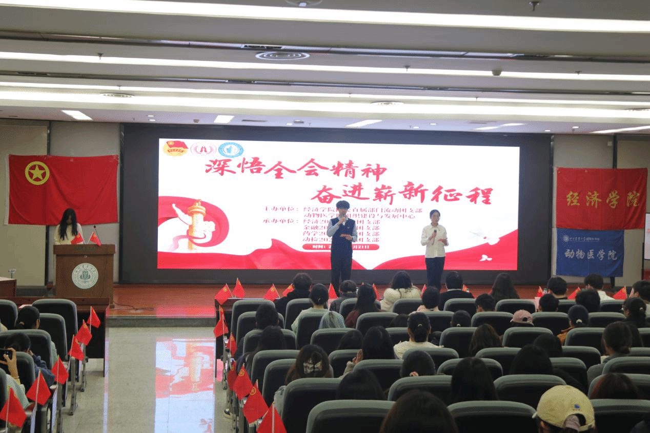 新程引领同心,笃行共筑未来。为深入学习贯彻党的二十届四中全会精神,把握“十五五”规划战略部署的深刻内涵与重大意义,11月21日经济学院和动物医学院联合举办“深悟全会精神,奋进崭新征程”示范性班团活动。经济学院党委办公室主任、团委书记朱玉老师、经济学院研究生兼职辅导员陈铭佳老师等多位嘉宾与两院的200余名团员和青年齐聚一堂共同参与这场青春盛会。