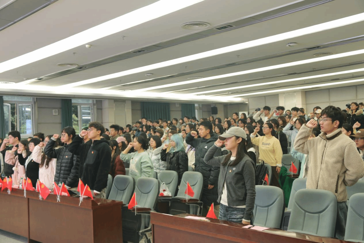 活动最后,全场再次唱响团歌。歌声承载着整场活动的收获与感动,汇聚成并肩前行、奔赴山海的磅礴力量。本次示范性班团活动创新性地以“政策宣讲、情景演绎、榜样访谈、集体宣誓”等多元形式层层递进,引导青年学子在时代大潮中找准方位、提升本领、实现价值,以青春之我、奋斗之我,在新时代新征程中彰显青春担当!