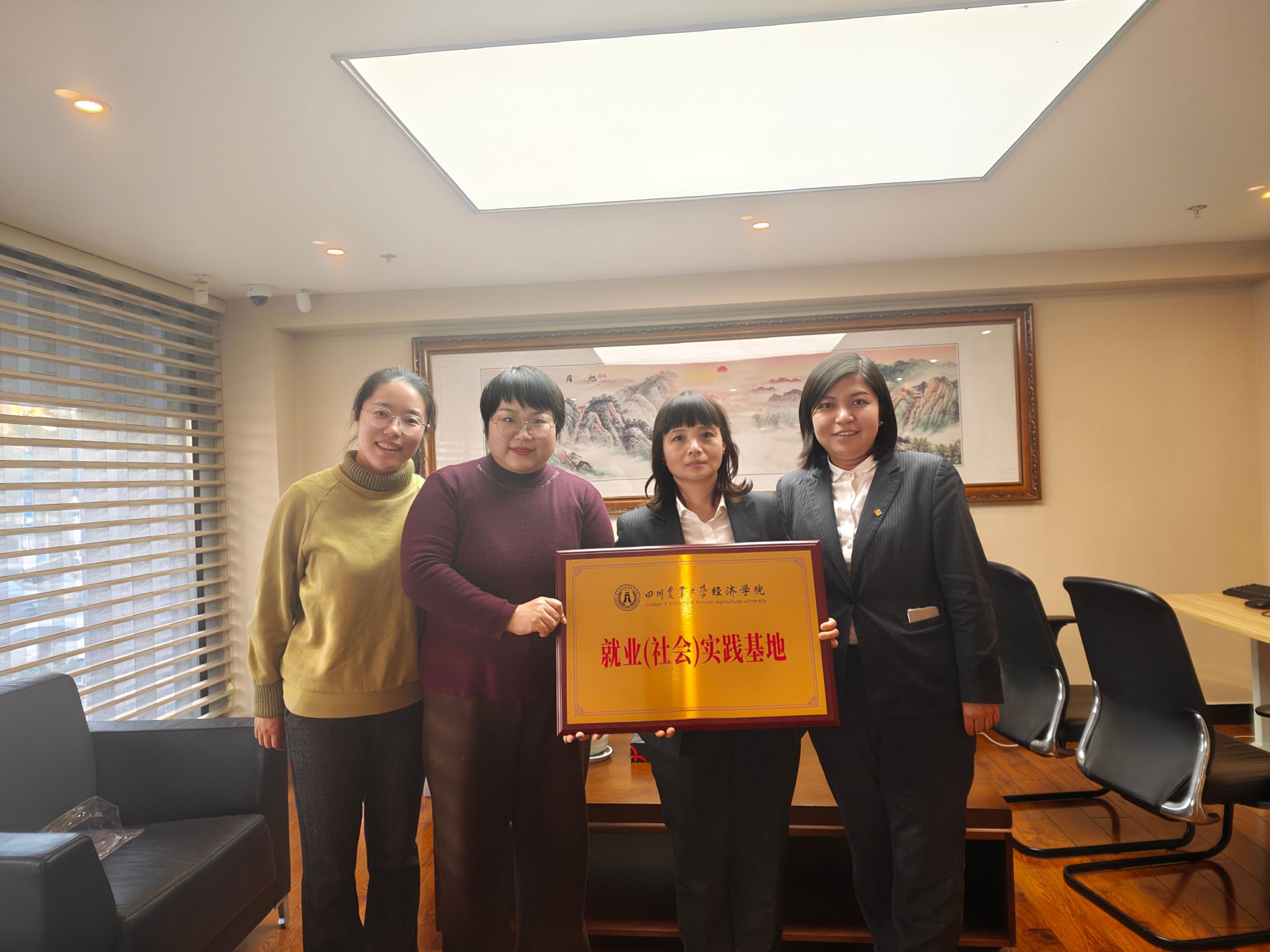 1月8日,学院党委办主任朱玉、就业秘书程远蝶一行前往哈尔滨银行温江支行,开展校企合作洽谈,并成功举行“就业(社会)实践基地”签约授牌仪式。哈尔滨银行温江支行行长王蕊、副行长郑晓青出席座谈交流。