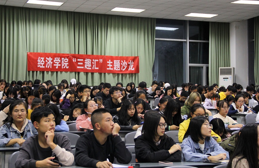 为提高经济学院学子对社会实践活动的热情,培养同学们在社会实践活动中的实际操作能力,2019年10月28日晚19:30,经济学院团委实践部、双创部在四教A108举行第六届“三趣汇”暑期社会实践调研分享会。本次活动邀请到了卓震宇、李东擎、薛瑜、黄雨四位暑期社会实践校级优秀团队队长,学院党委副书记、纪委书记何仁辉老师,党委办罗利娟老师,学生团委副书记何丽颖、向洋也参加了此次分享会。