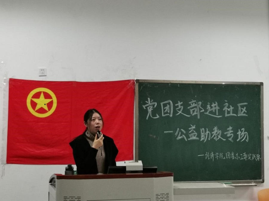 为进一步响应团省委“青春志愿,爱在社区”的号召,加强同学们对公益助教的认识,2019年11月22日早10:30,经济学院团委实践部、志工部在四教A206教室举办党团支部进社区——公益助教培训会。本次活动邀请到了铁篱村负责人陈易女士,学院党委办罗利娟老师、暑期社会实践公益助教团队优秀队长代表唐悦涵、优秀队员代表杜茜萍一同参加了此次分享会。