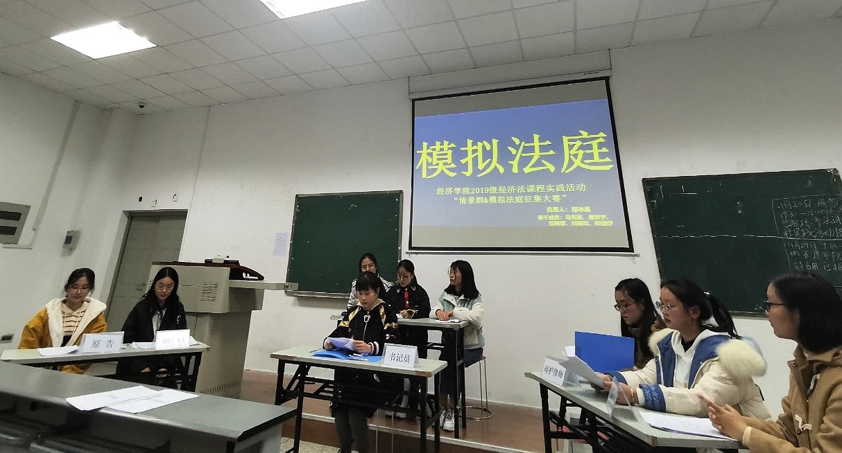 2019年11月20日(周三下午16:30-21:00)与22日(周五晚上19:30-21:00),金融与国贸两个专业的大一同学在四教A202分组开展了本次“情景法&模拟法庭征集大赛”主题课程实践活动。学院党委副书记、纪委书记何仁辉老师,党委办公室徐秋梅老师受邀出席观看并给予支持和建议,四川大学法学院研究生谢佳颐学姐、朱林林学长、李经洋学长受邀出席观看并做出点评。