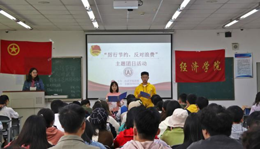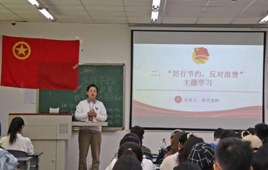 为深入贯彻习近平总书记关于制止餐饮浪费行为的重要指示精神,营造浪费可耻、节约为荣的氛围,同时推进2020级各支部团日活动的规范有序开展,经济学院团委举办了“厉行节约,反对浪费”新生示范性团日活动。本次活动由金融201902团支部承办,于10月28日中午在4B309开展。金融201902班主任陈莉老师,经济学院党委办公室副主任兼团委书记钟贝老师、党员先锋队队长付太飞、学生团委副书记姜秋睿以及学生会执行主席陈秋悦等主席团成员出席此次活动,2020级全体团支委到会观摩。