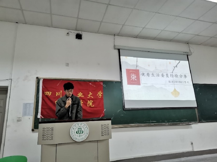 然后,经济学院权益部邀请了优秀生活委员代表经济201801李凡同学进行了经验分享。李凡同学分享的连续担任三年生活委员,换了三位搭档的心得体会赢得了在座各位委员的掌声。