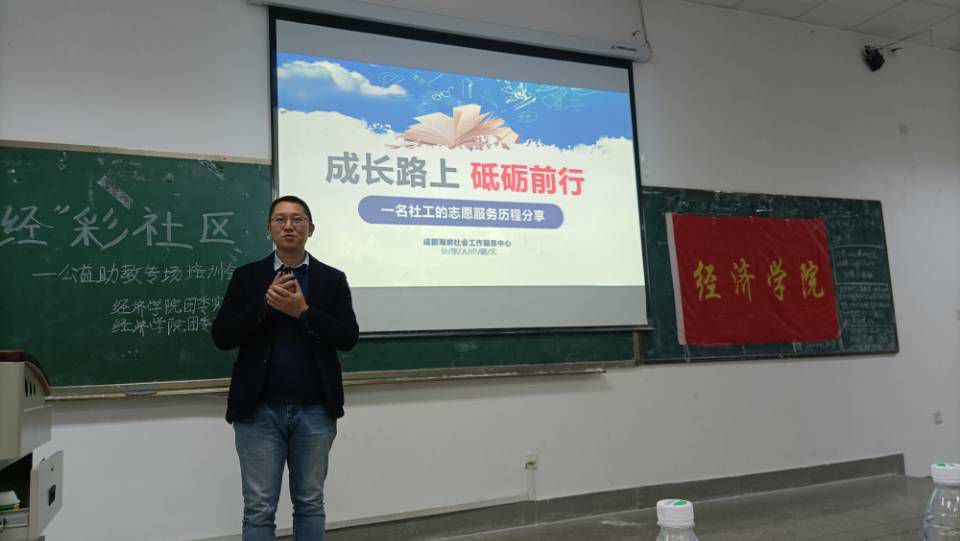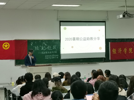 11月12日下午,经济学院团委实践部、志工部在4-A103教室举办“经”彩社区公益助教专场培训会。成都海纳社会工作服务中心负责人卢健文、学院团委书记兼党委办公室副主任钟贝、公益助教团队代表,以及有意愿参加寒假公益助教的180余名同学参会。