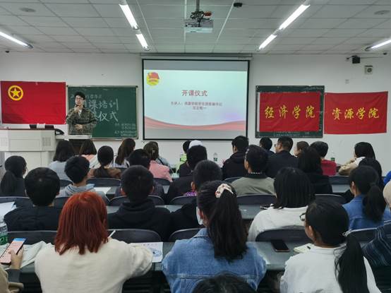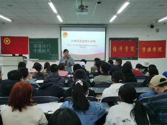 为发展团员队伍,指导培养具有时代责任感和使命感的新团员,经济学院团委与资源学院团委合办了此次团课培训仪式。本次活动由经济学院团委组织部和资源学院团委组织部承办,于11月15日下午在4B406开展,经济学院党委办公室副主任兼团委书记钟贝老师、学生团委副书记姜秋睿,资源学院学生团委副书记汪正蛟一以及经济学院团委组织部、资源学院团委组织部部长刘爽、刘润玉、罗曼秋、黄馨谊、李龙出席此次活动,经济学院与资源学院申请入团学员共53人到场听讲。