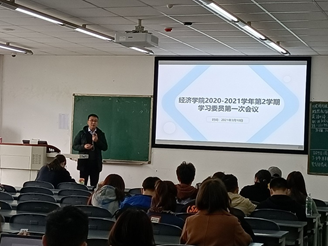 3月10日中午13点40,经济学院2020-2021学年第二学期副班长兼学习委员第一次会议在4-B408举行。参加此次会议的有经济学院党委副书记何仁辉老师、经济学院党委办公室罗利娟老师、经济学院学生会副主席叶龙飞以及经济学院本科2017级、2018级、2019级、2020级的小班学习委员。此次会议旨在加强副班长兼学习委员对相关工作的理解与把握,切实推进学院学风建设工作。