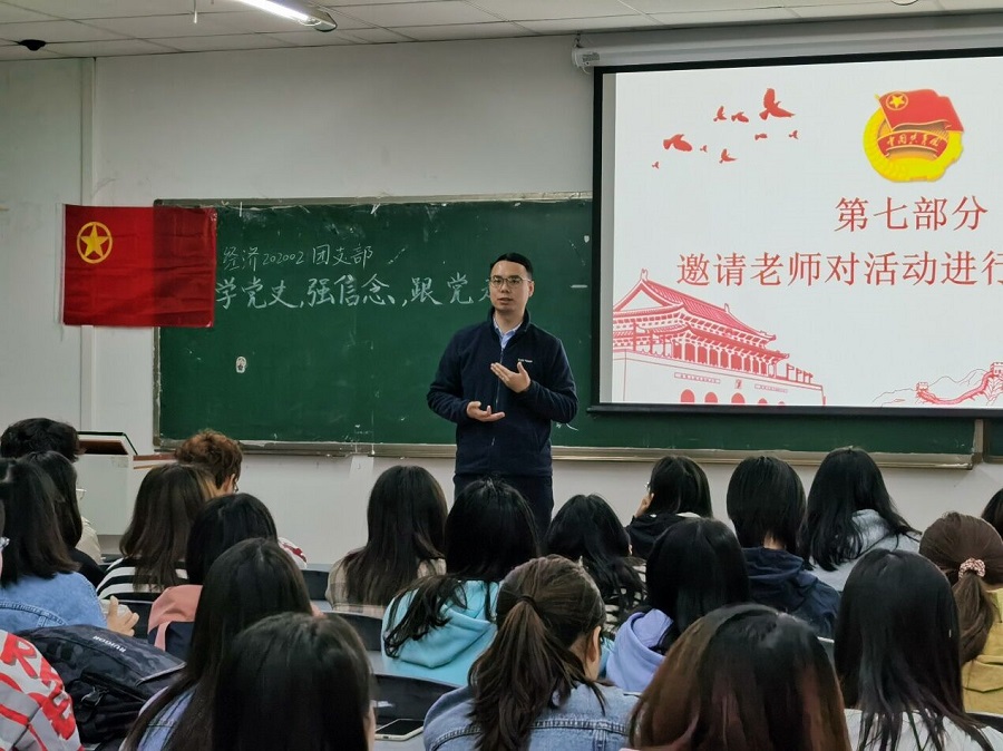 中国共产党党史是几代共产党人的智慧结晶,是先辈赐予我们的宝贵精神财富。作为共产主义的接班人,广大共青团员更应当“知史爱党、知史爱国”。4月19日,经济202002团支部在4-C209开展了“学党史、强信念、跟党走”主题团日活动,让“党史”学习教育深入人心。我院团委兼职副书记、经济学系副主任邓鑫博士,经济202001团支书黄娴雅、副支书王杰超、投资202001团支书卢荣冀、副支书吕代林出席本次活动。本次活动由杨尚巧同学主持。
