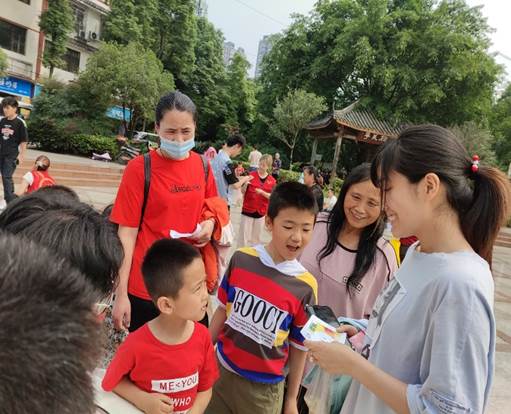 为迎接建党100周年,继承和发扬党的光荣传统和优良作风,推动党史学习教育走深走实、入脑入心,5月29日上午,我院团委直属部门团支部的青年志愿者们前往惠民社区中心广场开展了 “童心向党,童伴童乐”儿童志愿服务活动,通过开展符合青少年特点的党史学习教育,引导广大青少年立志听党话、跟党走,传承革命精神。