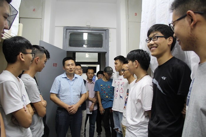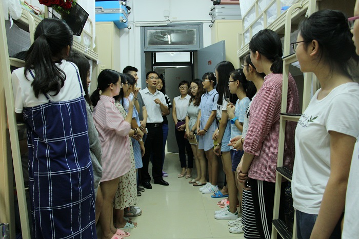 何仁辉、吴平一行先后走访了学生第1公寓、2公寓和8公寓,他们细细查看了学生的住宿环境,亲切询问了入学后的适应情况、心理变化和同学关系等。面对一张张稚嫩的脸庞,一阵阵热情的掌声,何仁辉首先转达了学院党委书记漆雁斌、院长蒋远胜对2017级新同学的欢迎和慰问。何仁辉希望同学们保持“优秀的基因”,在大学里注重全面发展,提升自我管理能力,以寝室为单位营造良好的学习、生活氛围,树立高远的大学目标、职业目标和人生目标存,并为之努力奋斗。
