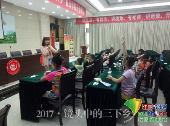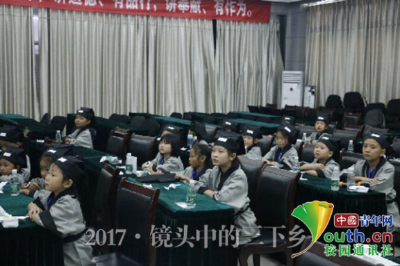 中国青年网成都8月11日电(通讯员 夏凡迪 许紫葳)“弟子规,圣人训,首孝第,次谨信……”7月11日,四川温江区天乡路社区一楼会议室书声琅琅。从《三字经》,《论语》再到《弟子规》,一篇篇国学经典在孩子们稚嫩的童声中一遍又一遍地重复着。教孩子们诵读国学经典,这是tyc41183太阳成集团学成都市温江区“村官挂职”锻炼团队与社区的约定。